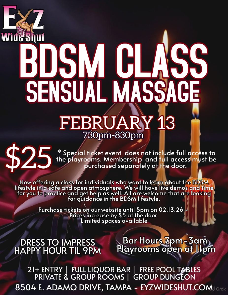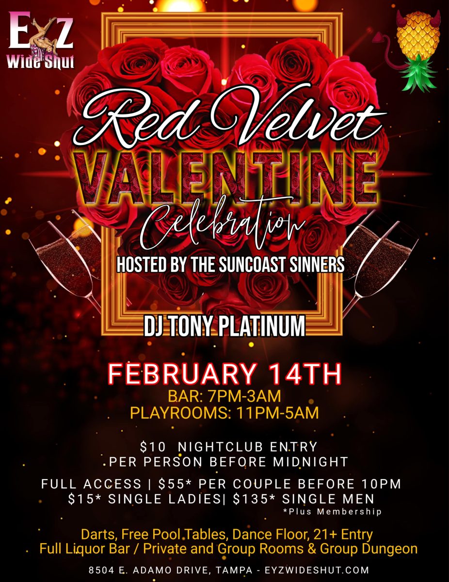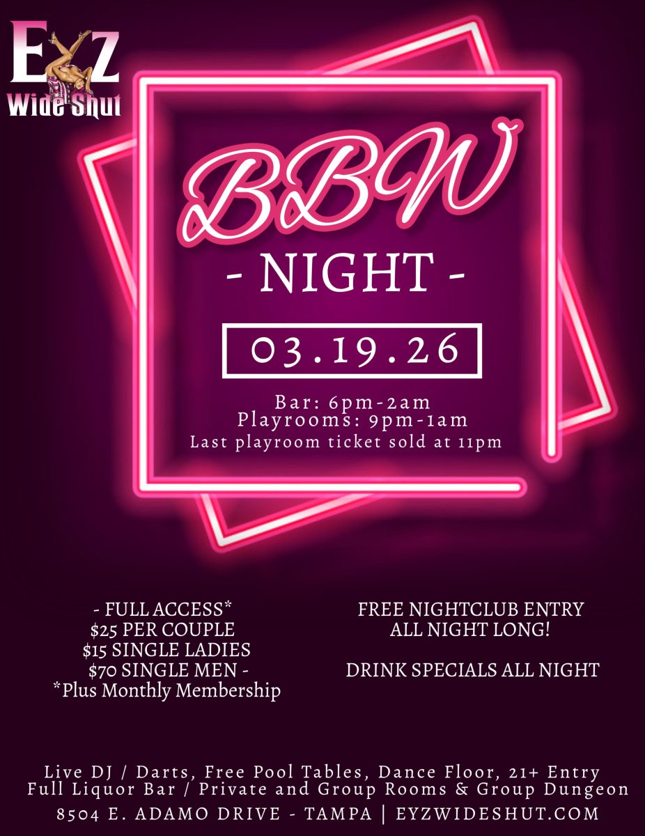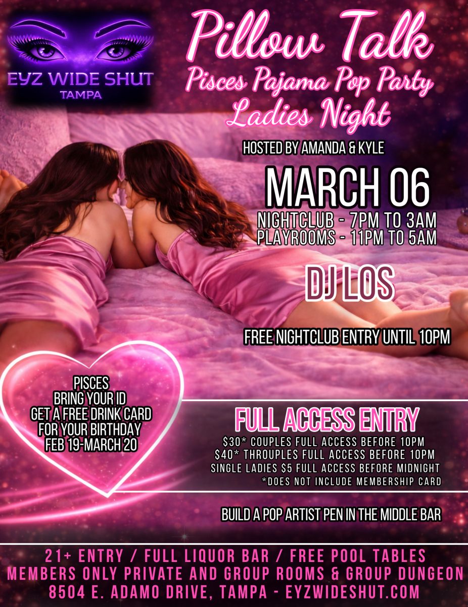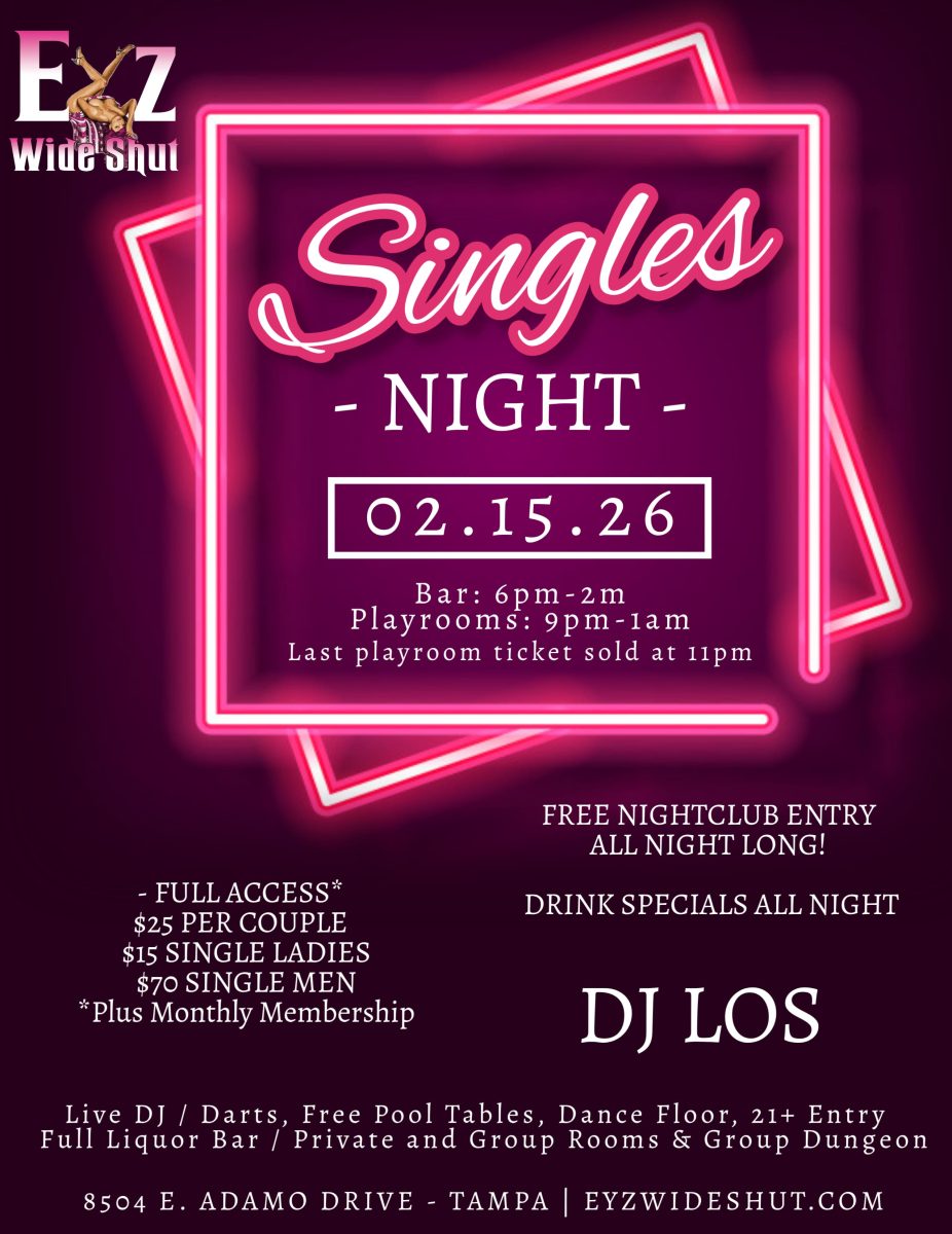 Group rooms at Eyz Wide Shut are exclusively for couples and single females, with single males welcomed into private rooms by invitation only. All males must stay with a female to enter the group room, with the exception of Pride night or the Group Dungeon.