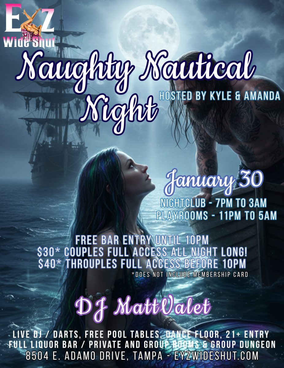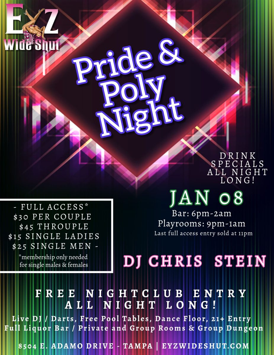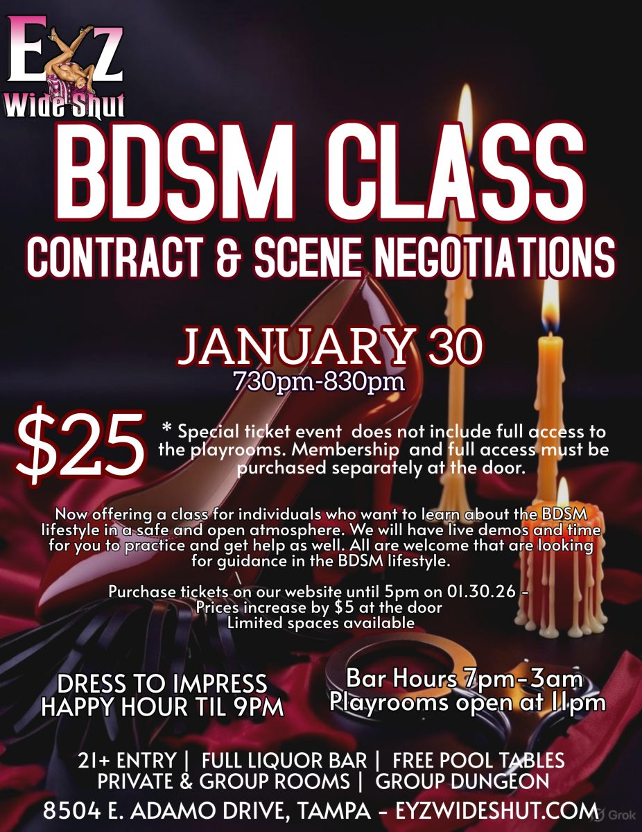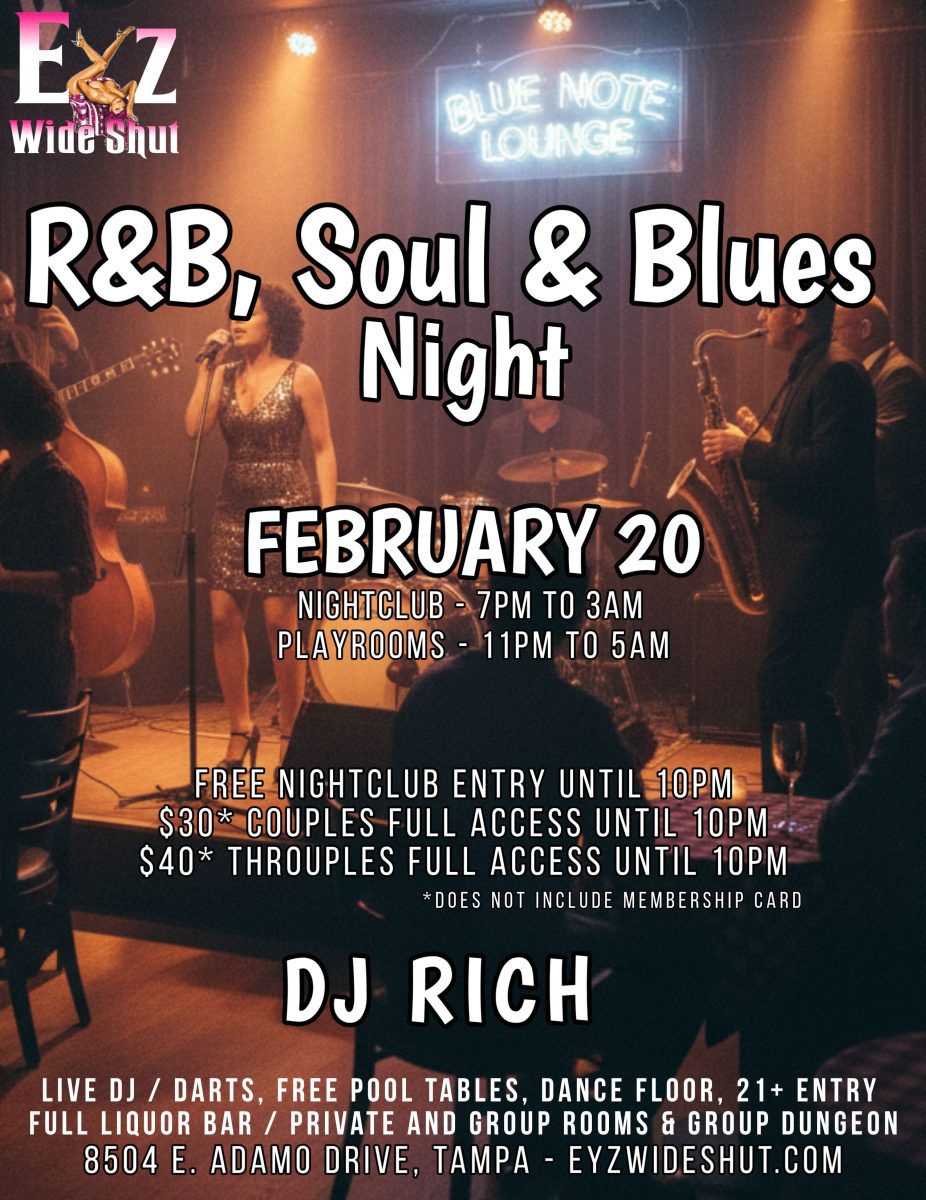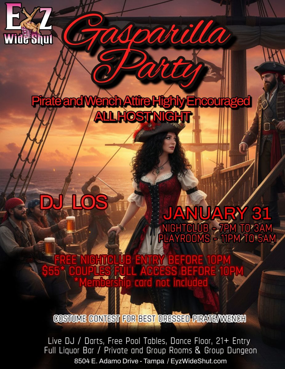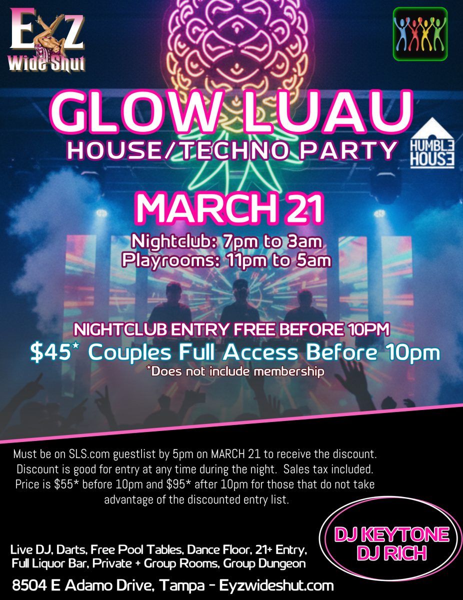 Group rooms at Eyz Wide Shut are exclusively for couples and single females, with single males welcomed into private rooms by invitation only. All males must stay with a female to enter the group room, with the exception of Pride night or the Group Dungeon.