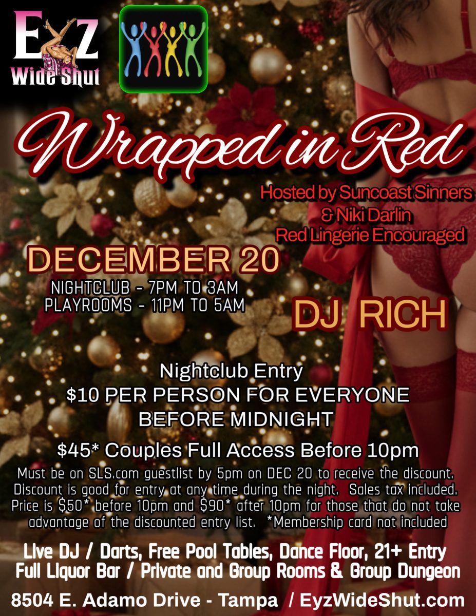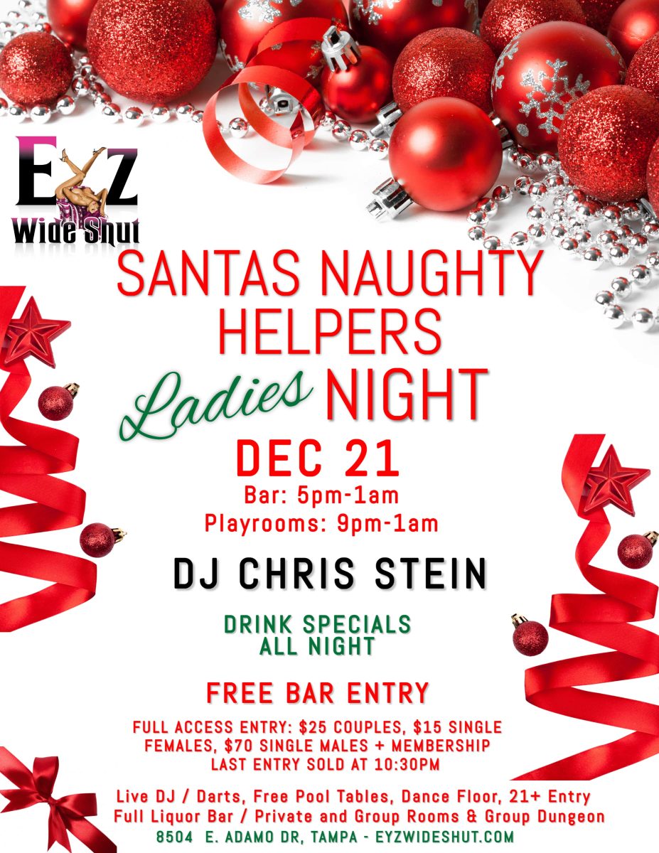 Group rooms at Eyz Wide Shut are exclusively for couples and single females, with single males welcomed into private rooms by invitation only. All males must stay with a female to enter the group room, with the exception of Pride night or the Group Dungeon.