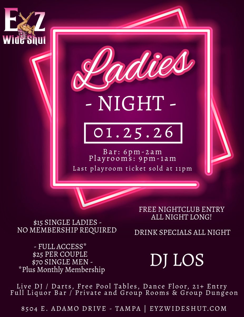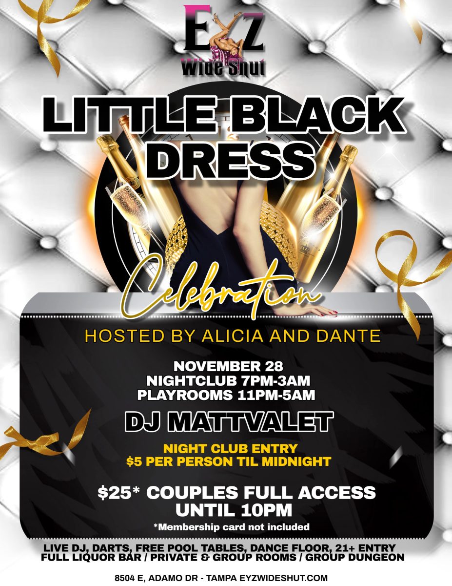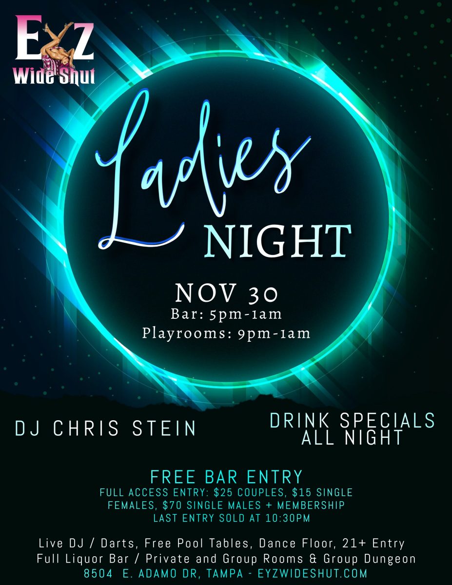 Group rooms at Eyz Wide Shut are exclusively for couples and single females, with single males welcomed into private rooms by invitation only. All males must stay with a female to enter the group room, with the exception of Pride night or the Group Dungeon.