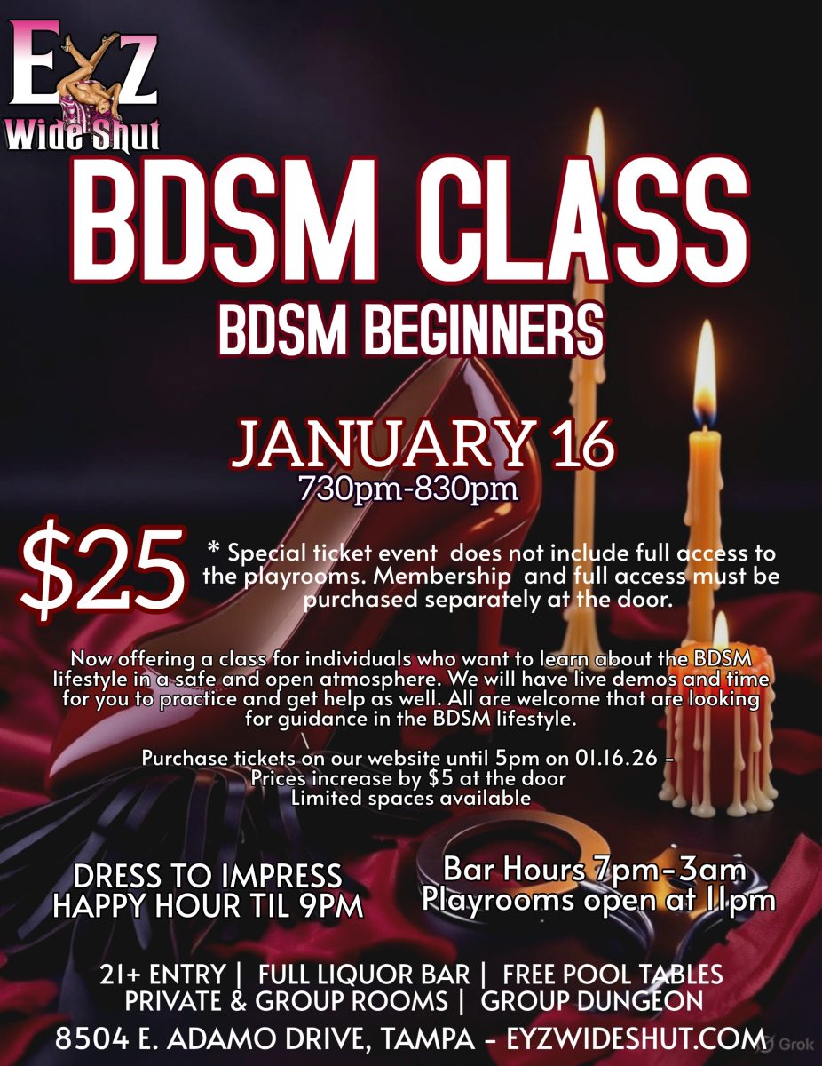 Group rooms at Eyz Wide Shut are exclusively for couples and single females, with single males welcomed into private rooms by invitation only. All males must stay with a female to enter the group room, with the exception of Pride night or the Group Dungeon.