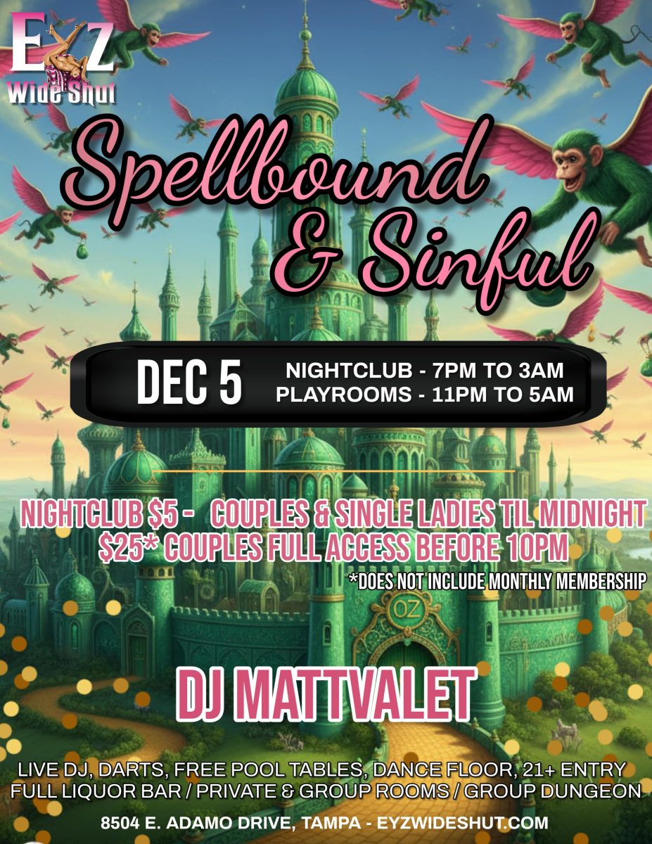 Group rooms at Eyz Wide Shut are exclusively for couples and single females, with single males welcomed into private rooms by invitation only. All males must stay with a female to enter the group room, with the exception of Pride night or the Group Dungeon.