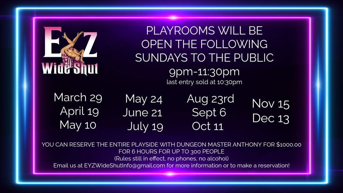 -This gives you entry into our playrooms as a private member - $159 Couples/Single Female Annual